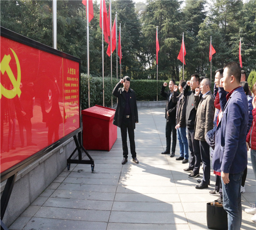公司党总支全体党员胸前佩戴党徽,于11月29日上午11时到达韶山。青山肃穆、白云俯首,在毛主席铜像广场,首先由党总支书记李方爱同志带领全体党员敬献了花篮,全体党员鞠躬致敬,绕铜像一周,深切缅怀毛泽东同志。随后,全体党员在党旗下重温入党誓词,参观毛泽东同志故居。