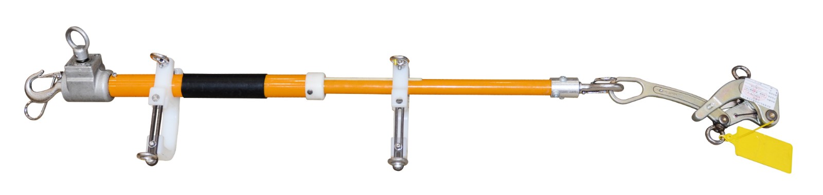 整套设备操作方便,重量轻巧,杆体采用的材料是FRP(纤维增强复合材料)耐高压绝缘性能好而且材料结实,绝缘短杆操作使得作业人员远离了高压电线,满足带电作业安全距离要求。作业工具相互配合,更换不同金具实现灵巧作业,极大程度做到了一干多用的特点。